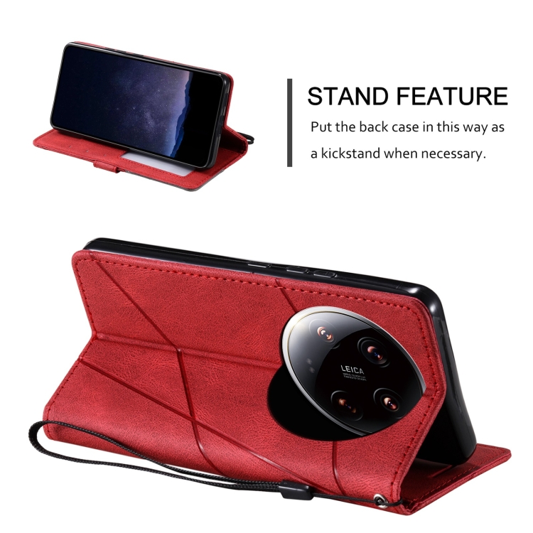 Para Xiaomi 14 Ultra Skin Feel Empalme Funda De Cuero Para Teléfono (Rojo)