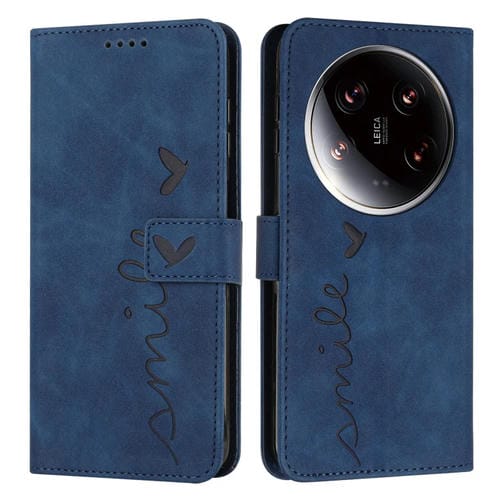 Para Xiaomi 14 Ultra Skin Feel Heart Funda Para Teléfono De Cuero En Relieve Con Cordón Largo (Azul)