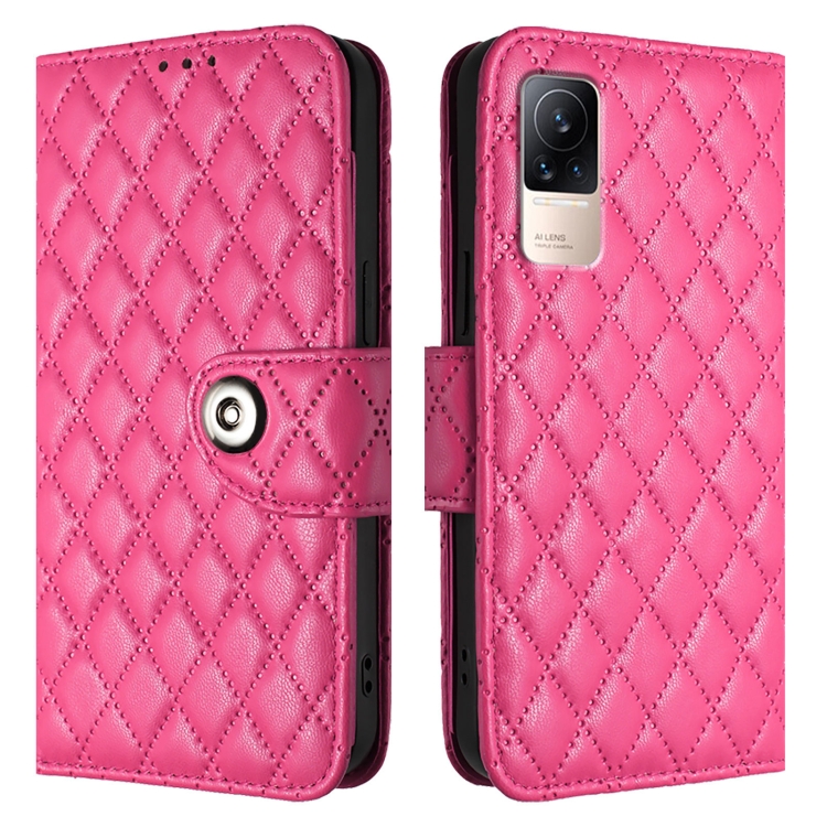 Para Xiaomi Civi 1S Funda de Cuero con Tapa con Textura Rómbica y Cordón (Rojo Rosa)