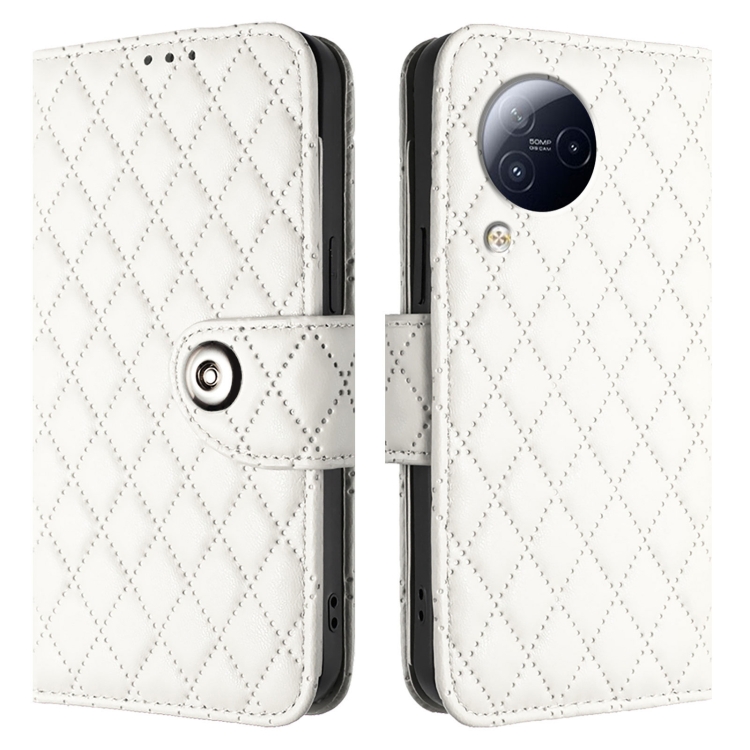 Para Xiaomi Civi 3 Funda de Cuero con Tapa con Textura Rómbica y Cordón (Blanco)
