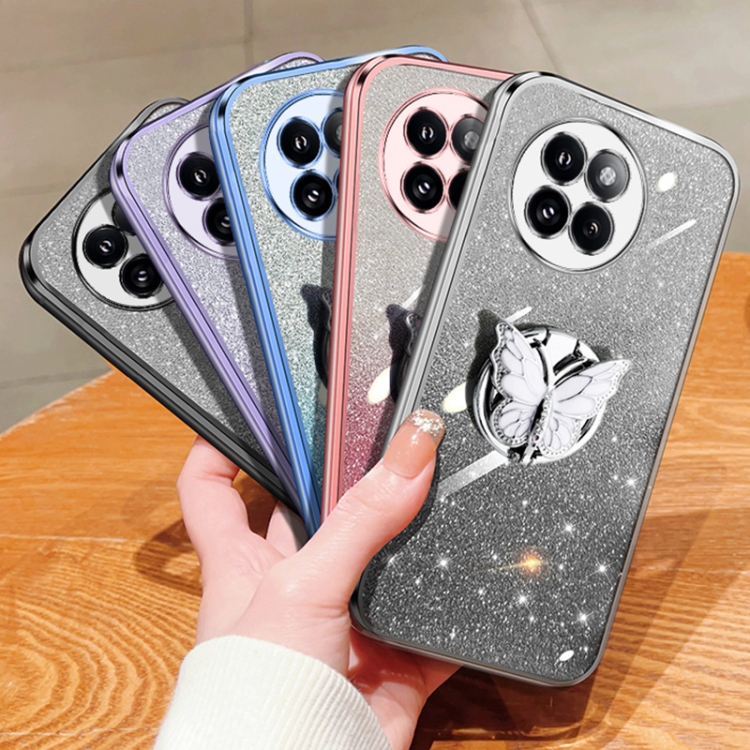 Para Xiaomi Civi 4 Pro Funda para Teléfono de TPU con Soporte de Mariposa con Brillo Degradado Plateado (Azul Sierra)