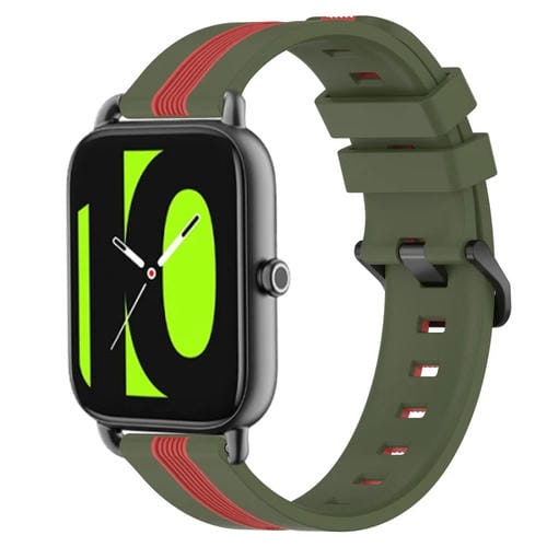 Banda de Reloj de Silicona 22mm para Xiaomi Haylou Rs4 Ls12 Dos Colores (Verde Militar + Rojo)