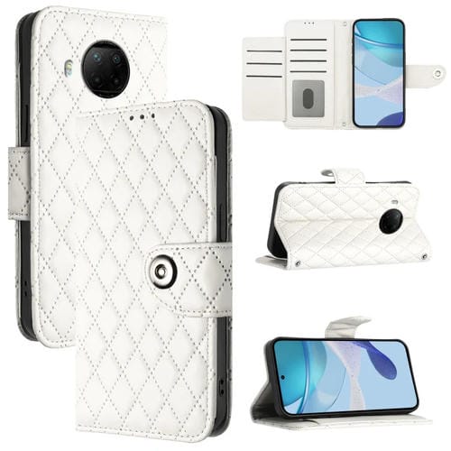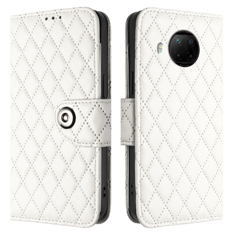 Para Xiaomi Mi 10T Lite 5G Funda de Cuero con Tapa con Textura Romboidal y Cordón (Blanco)