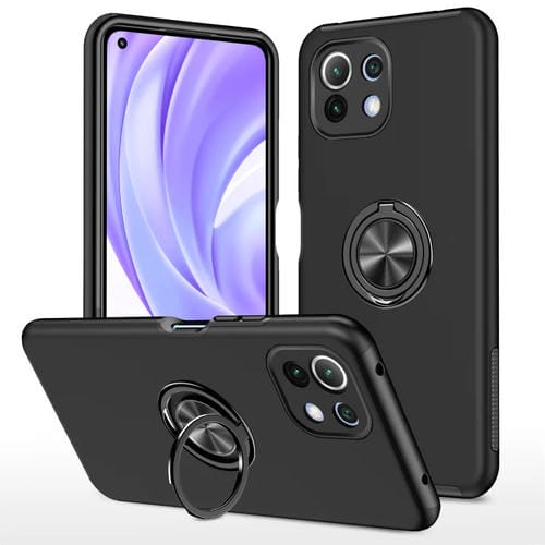 Para Xiaomi Mi 11 Lite 5G PC + TPU Funda de Teléfono Magnético a Prueba de Golpes con Titular de Anillo Invisible (Negro)