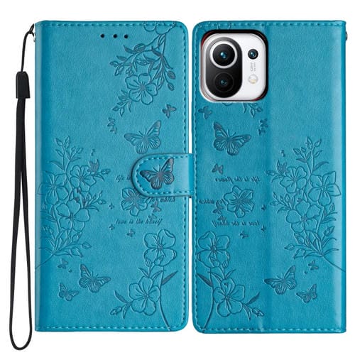 Para Xiaomi Mi 11 Lite Funda de Cuero para Teléfono con Mariposas y Flores (Azul)