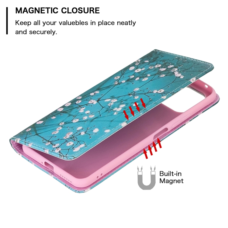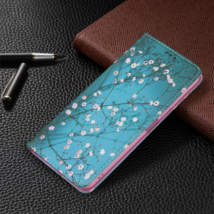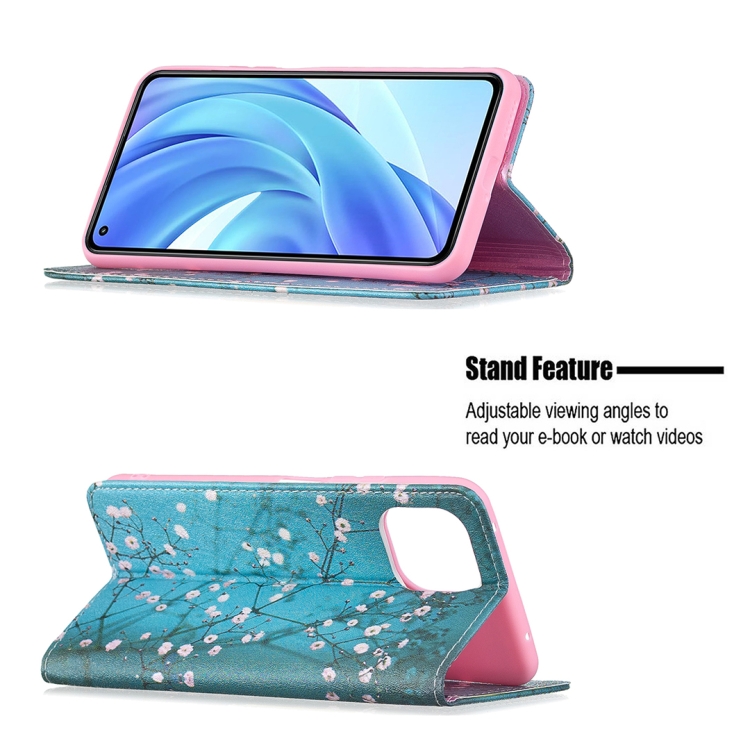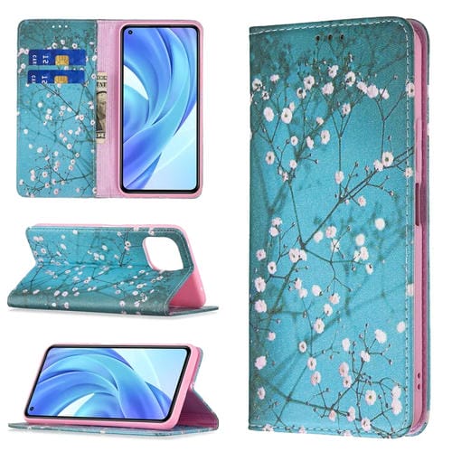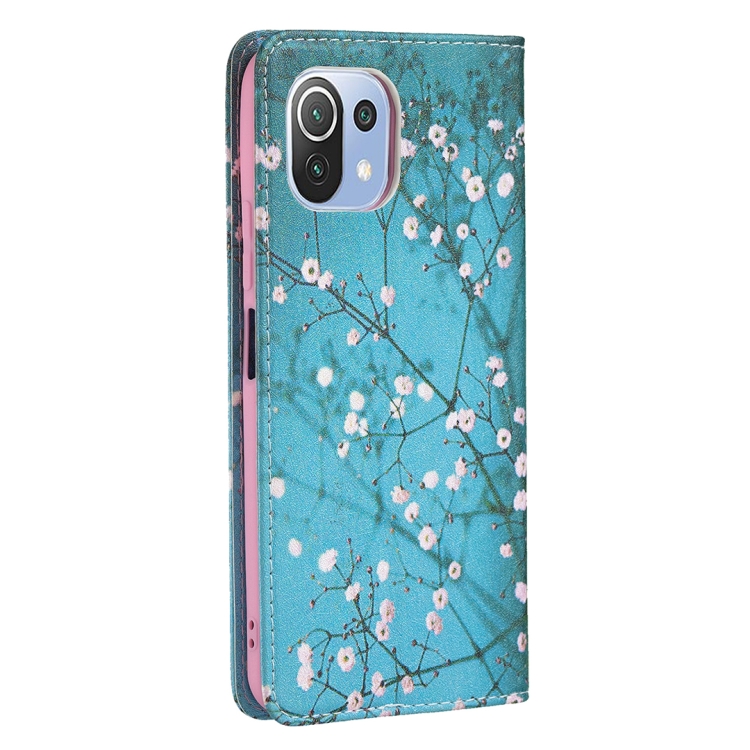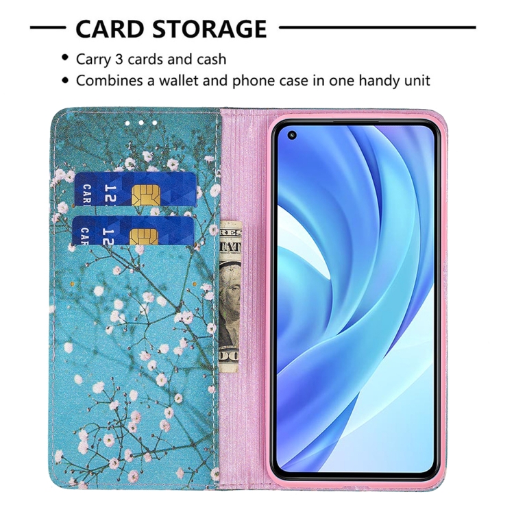 Para Xiaomi Mi 11 Lite Patrón de Dibujo de Color Invisible Magnético Horizontal Flip Pu Funda de Cuero con Soporte y Ranuras para Tarjetas (Flor de Ciruela)