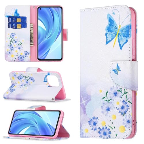Para Xiaomi Mi 11 Lite Patrón de Dibujo de Color Patrón de Dibujo Horizontal Flip Funda con Soporte y Tragamonedas y Billetera (Amor de Mariposa)