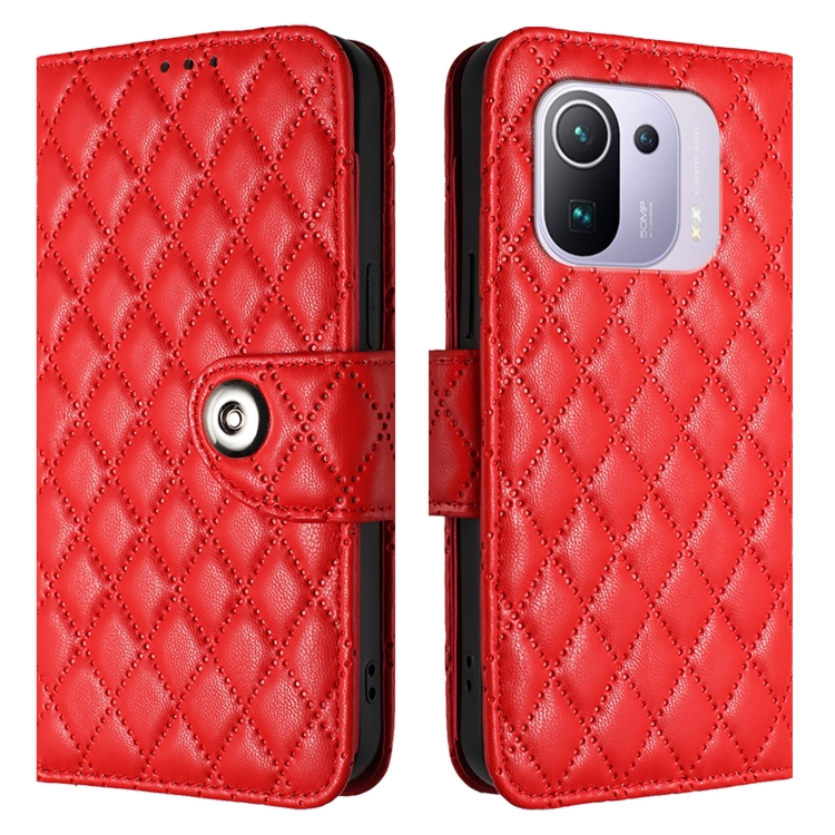 Para Xiaomi Mi 11 Pro Funda de Teléfono de Cuero con Tapa con Textura Rómbica y Cordón (Rojo)