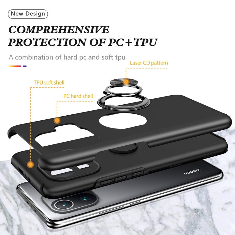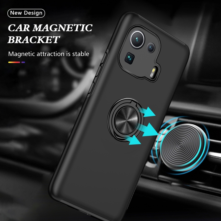 Para Xiaomi Mi 11 Pro PC + TPU Funda de Teléfono Magnético a Prueba de Golpes con Titular de Anillo Invisible (Negro)