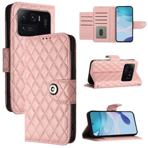 Para Xiaomi Mi 11 Ultra Rhombic Texture Funda de Cuero con Tapa para Teléfono con Cordón (Rosa Coral)