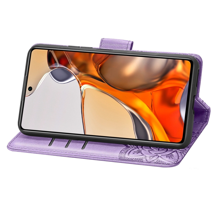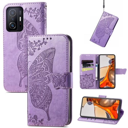 Para Xiaomi Mi 11T / 11T Pro Butterfly Love Flowers En Relieve Funda de Cuero Horizontal Flip con Soporte y Ranuras para Tarjetas y Filtera (Púrpura Claro)