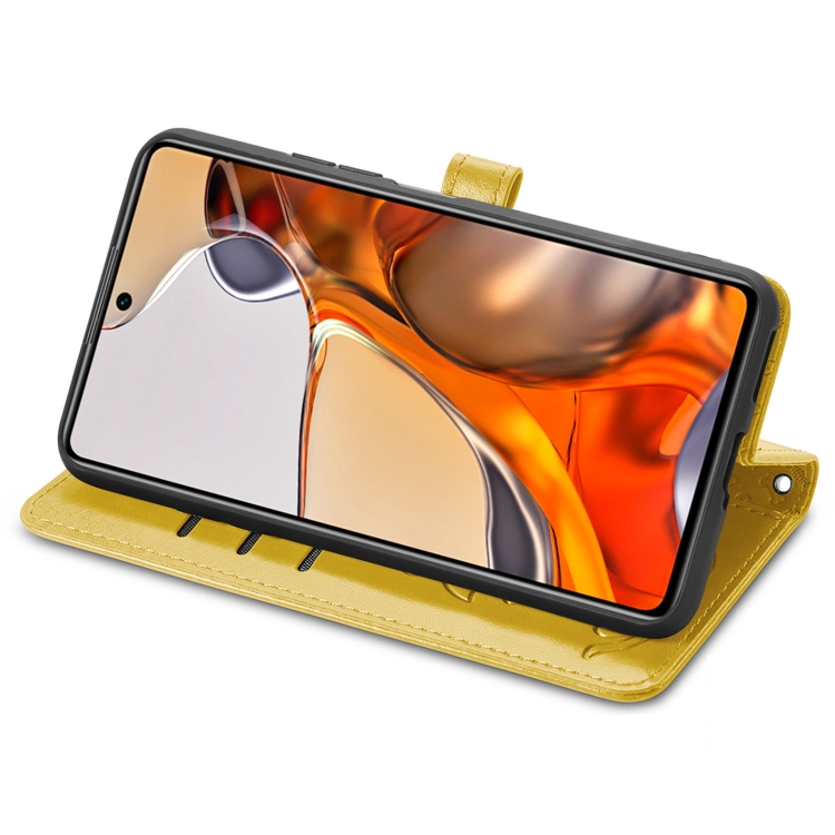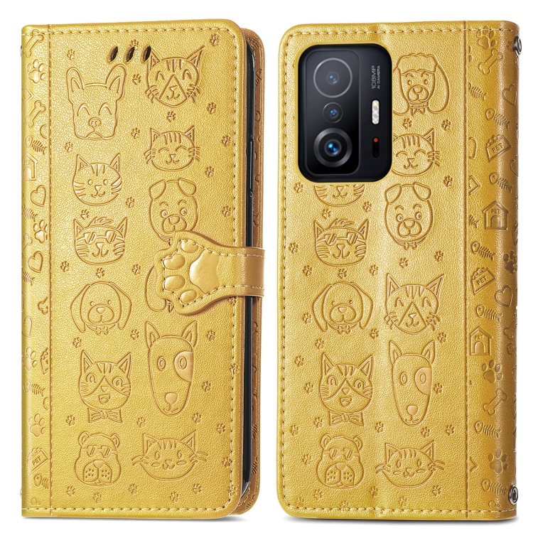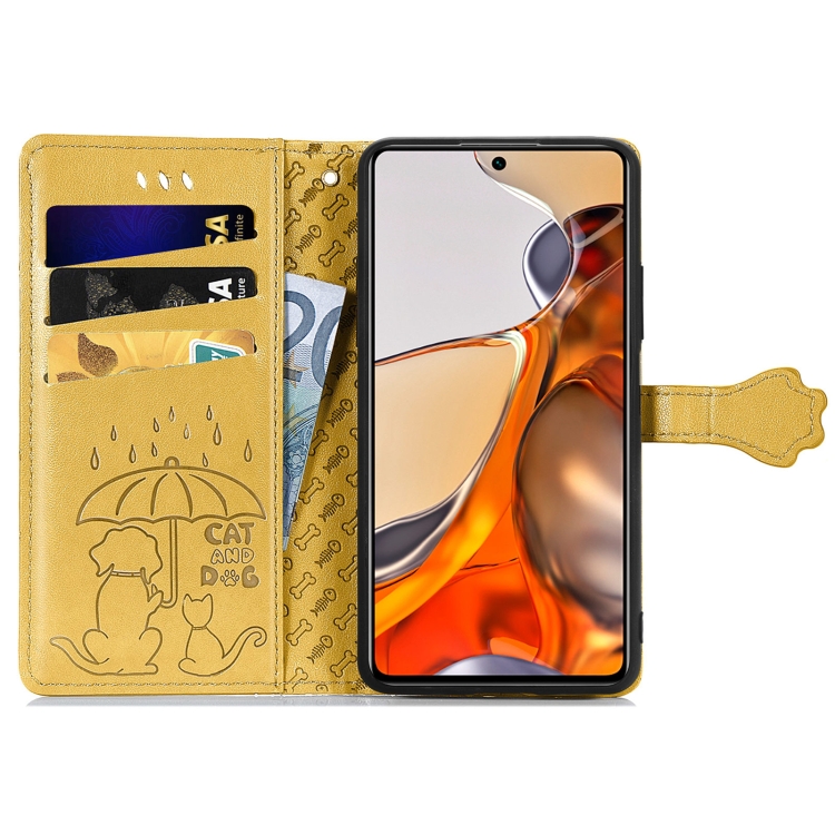 Para Xiaomi Mi 11T / 11T Pro Cat y Funda de Cuero Horizontal Horizontal Flips Horizontal con Titular y Tarjeta Slot & Wallet & Lanyard (Amarillo)