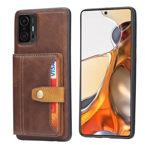 Para Xiaomi Mi 11T / Mi 11T Pro Calfskin Color Aumplio Aproximación TPU + Pu Caja con Soporte y Ranura para Tarjeta (Marrón)