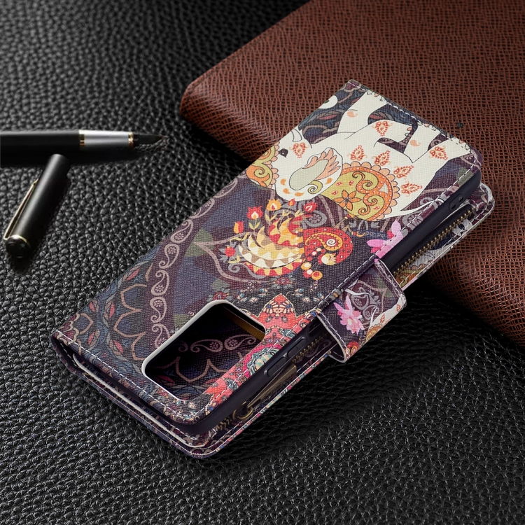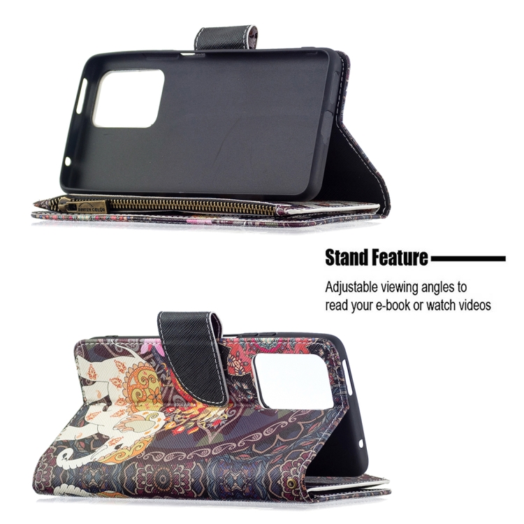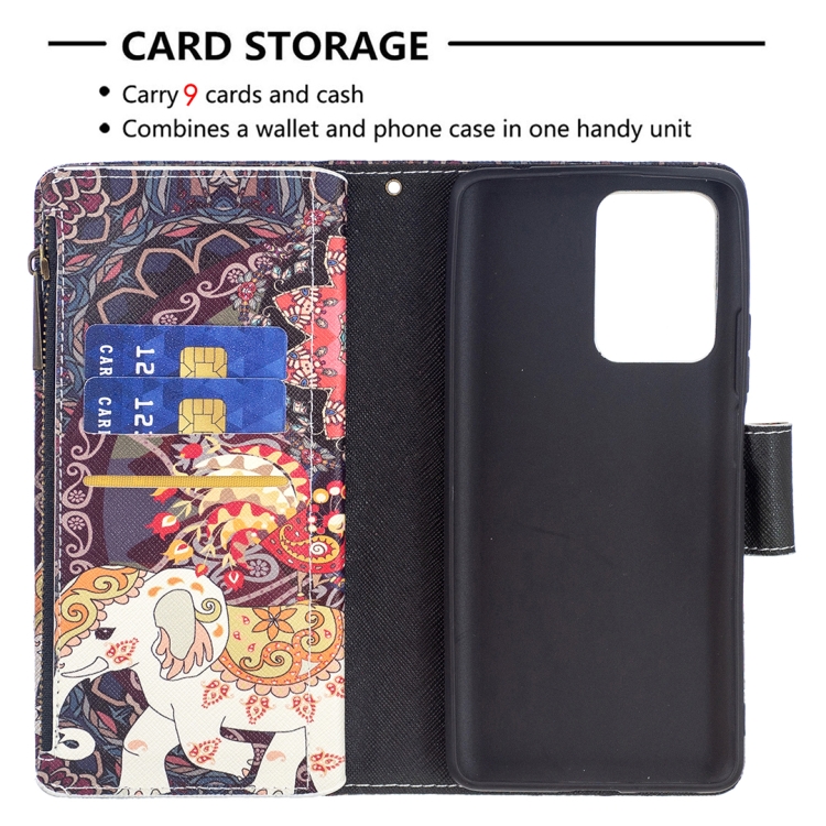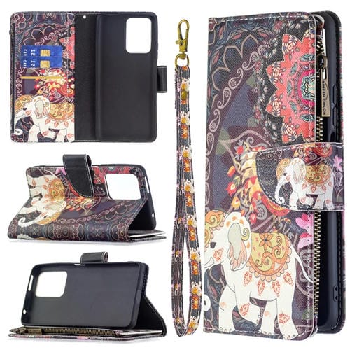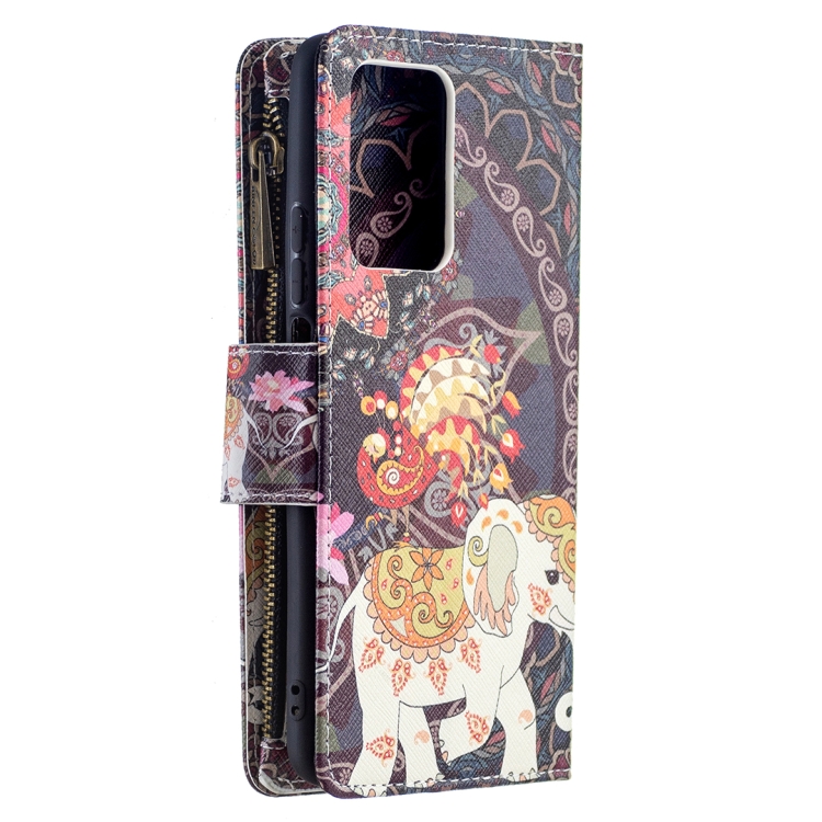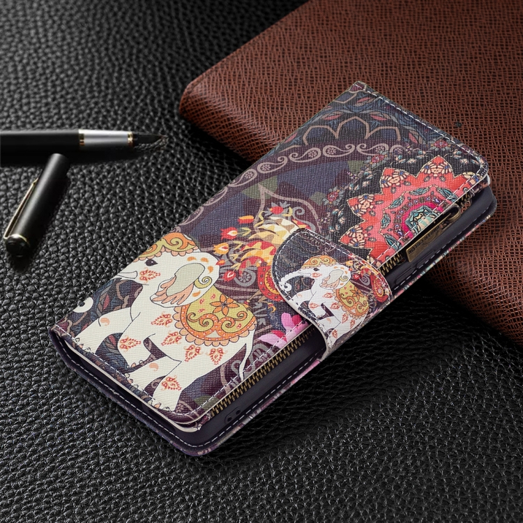Para Xiaomi Mi 11T Patrón de Dibujo de Color Cremallera con Cremallera Horizontal Flip Funda con Soporte y Tragamonedas y Billetera (Elefantes de Flores)