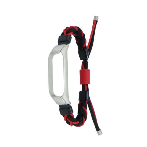 Correa de Reloj Xiaomi Mi Band 7 Nailon con Cordón Trenzado y Frijol de Silicona (Negro Rojo)