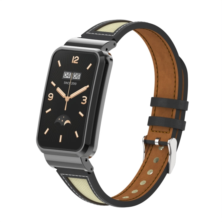 Banda para Xiaomi Mi Band 7 Pro Marco de Metal y Cuero de Cintura Pequeña (Negro)