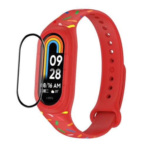 For Xiaomi Mi Band 8 ENKAY Hat-Prince Full Coverage Screen Protector + Adjustable Silicone Sport Strap Watch Band (Red)