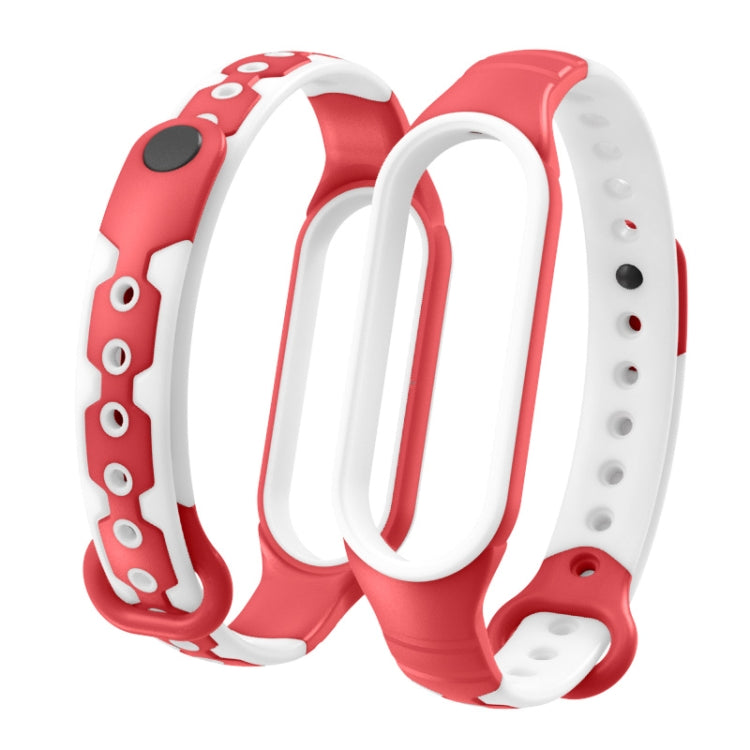 Correa silicona dos colores para Xiaomi Mi Banda 6 y Banda 5 reemplazo transpirable (Blanco Rojo)