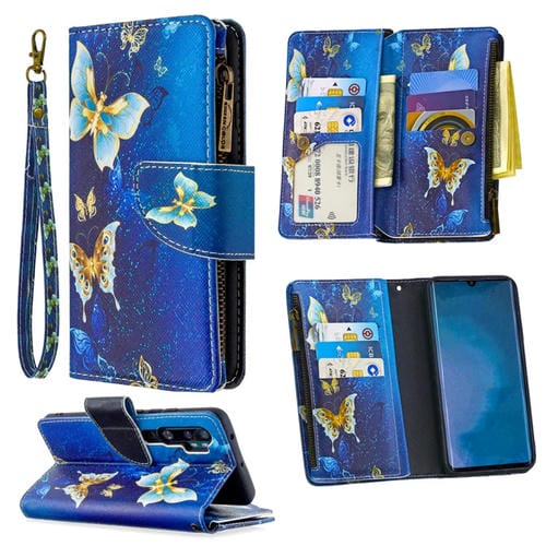 Para Xiaomi Mi Cc9 Pro / Note 10 Patrón de Dibujo de Colores Cremallera Funda de Cuero con Tapa Horizontal con Soporte y Ranuras para Tarjetas y Billetera (Mariposa Dorada)