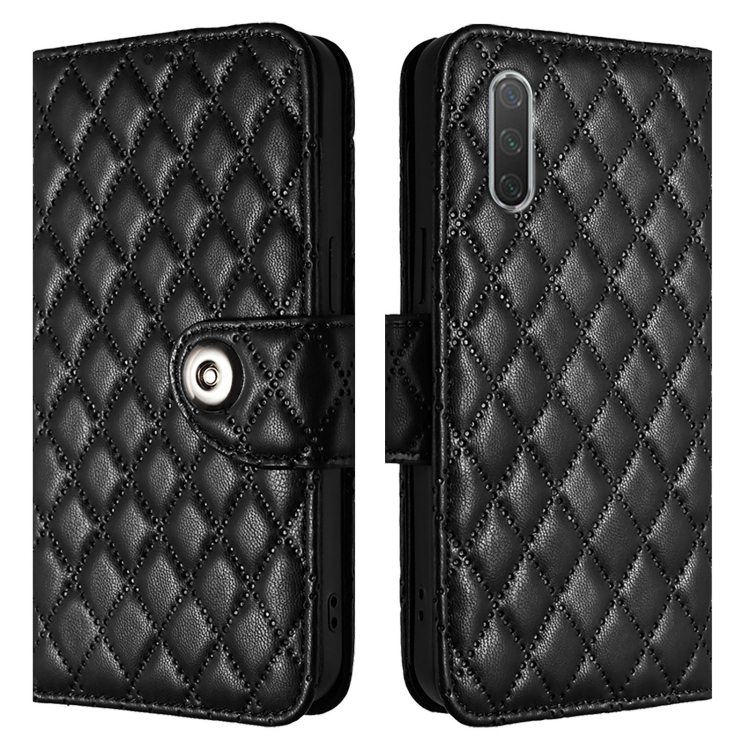 Para Xiaomi Mi Cc9E / Mi A3 Funda para Teléfono con Tapa de Cuero con Textura Rómbica y Cordón (Negro)