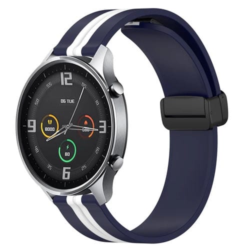 Correa de Reloj para Xiaomi Mi Watch Color 22mm Silicona con Cierre Magnético Plegable (Azul Medianoche + Blanco)