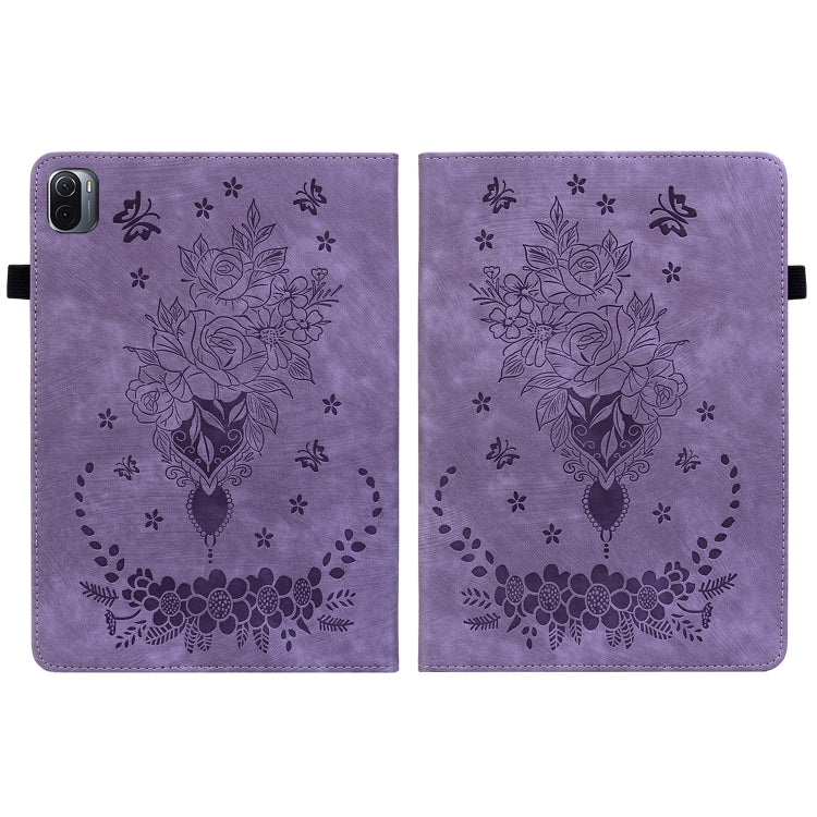 Para Xiaomi Pad 5 / Pad 5 Pro Butterfly Rose Funda de Cuero En Relieve para Tableta Inteligente (Púrpura)