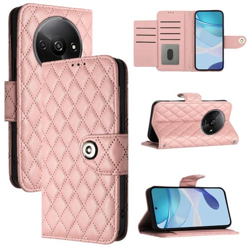 Para Xiaomi Poco C61 Funda para Teléfono de Cuero con Tapa con Textura Rómbica y Cordón (Rosa Coral)
