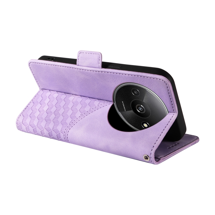 Para Xiaomi Poco C61 Funda para Teléfono de Cuero Estrellado con Rombos En Relieve (Púrpura)