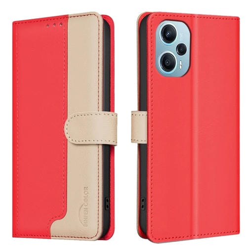 Para Xiaomi Poco F5 5G Funda de Cuero Antirrobo Rfid a Juego de Colores (Rojo)