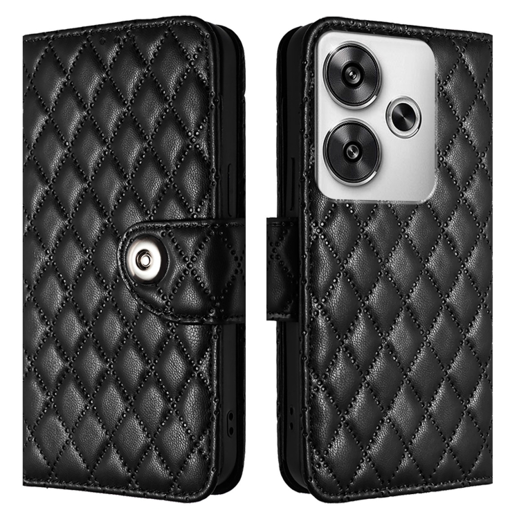 Para Xiaomi Poco F6 5G Funda para Teléfono de Cuero con Tapa con Textura Romboidal y Cordón (Negro)