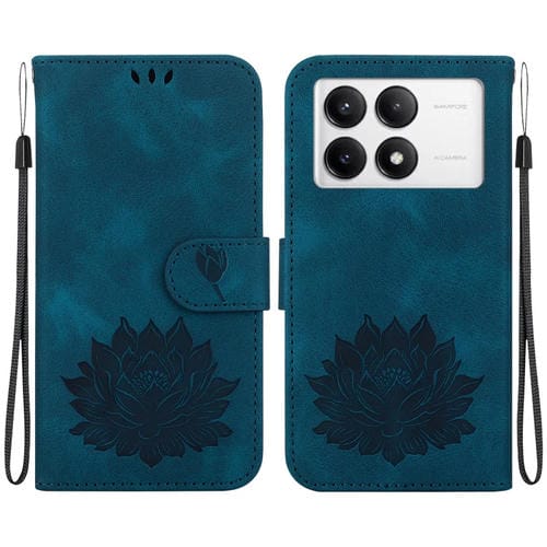 Para Xiaomi Poco F6 Pro Lotus Funda de Cuero En Relieve para Teléfono (Azul Oscuro)