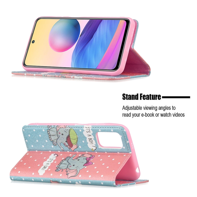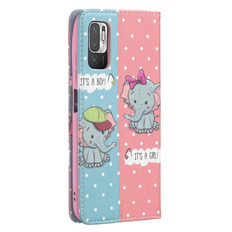 Para Xiaomi Poco M3 Pro / Redmi Note 10 5G Patrón de Dibujo de Color Invisible Magnético Horizontal Flip Pu Funda de Cuero con Soporte y Ranuras para Tarjetas (Elefante)