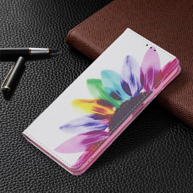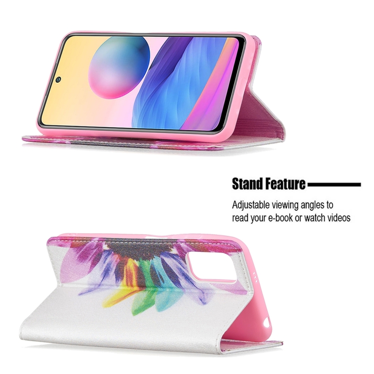 Para Xiaomi Poco M3 Pro / Redmi Note 10 5G Patrón de Dibujo de Color Invisible Magnético Horizontal Flip Pu Funda de Cuero con Soporte y Ranuras para Tarjetas (Flor de Sol)