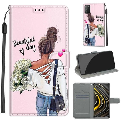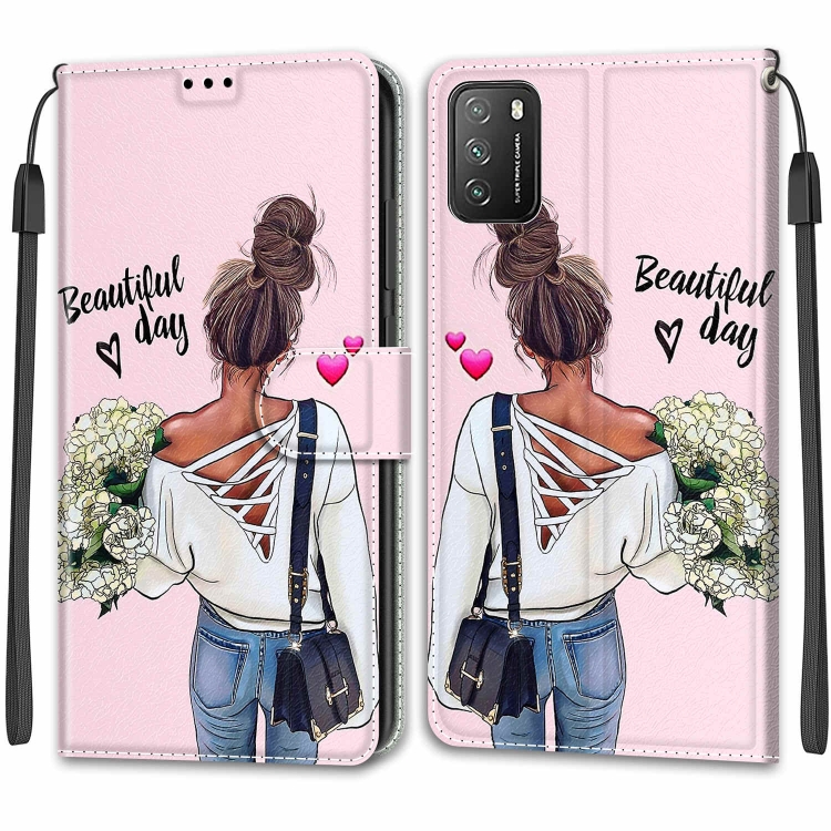 Para Xiaomi Poco M3 Tensión de Color Dibujo de Color Magnético Cierre de Cuero Horizontal Flip Pu Funda con Soporte y Ranuras para Tarjetas (C09 Flower)
