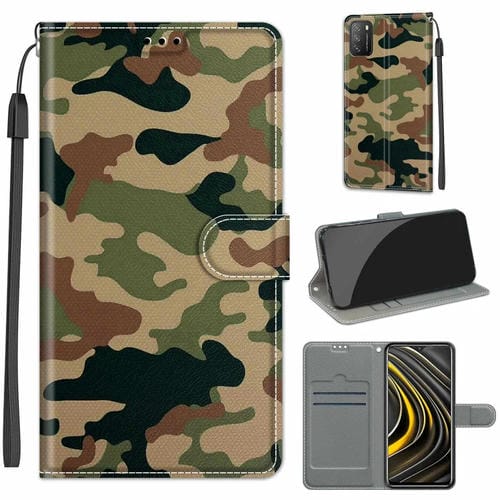 Para Xiaomi Poco M3 Tensión de Color Dibujo de Color Magnético Cierre de Cuero Horizontal Flip Pu Funda con Soporte y Ranuras para Tarjetas (C12 Verde Amarillo Camuflaje)