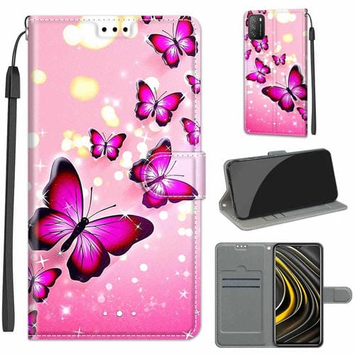 Para Xiaomi Poco M3 Voltaje de Color Dibujo de Color Magnético Cierre de Cuero Horizontal Flip Pu Funda con Soporte y Ranuras para Tarjetas (C03 Degradado Rosa Volando Mariposas)
