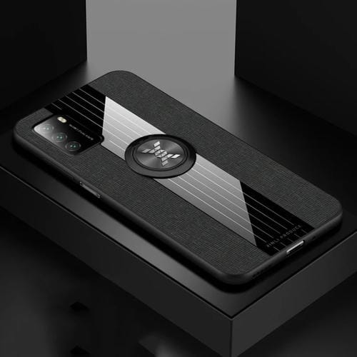 Para Xiaomi Poco M3 Xinli Paño de Costura Textura TPU Funda Telefónica con Soporte de Anillo (Negro)