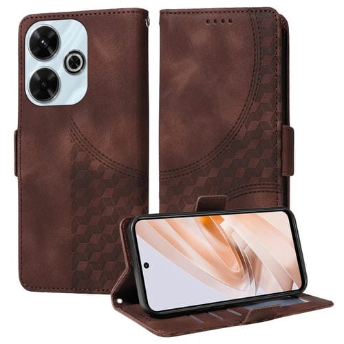 Para Xiaomi Poco M6 4G Funda de Teléfono de Cuero Estrellado con Rombos En Relieve (Marrón)