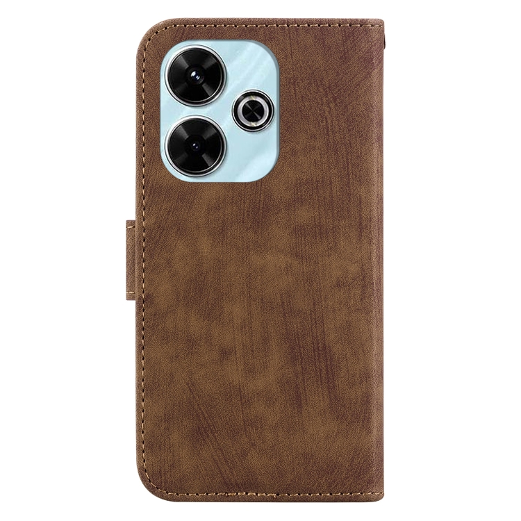 Para Xiaomi Poco M6 4G Little Tiger Funda de Cuero para Teléfono En Relieve (Marrón)