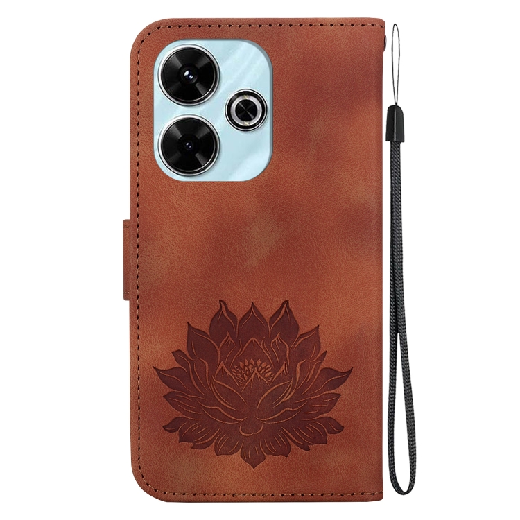 Para Xiaomi Poco M6 4G Lotus Funda de Cuero En Relieve para Teléfono (Marrón)