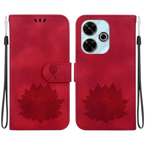 Para Xiaomi Poco M6 4G Lotus Funda de Cuero En Relieve para Teléfono (Rojo)