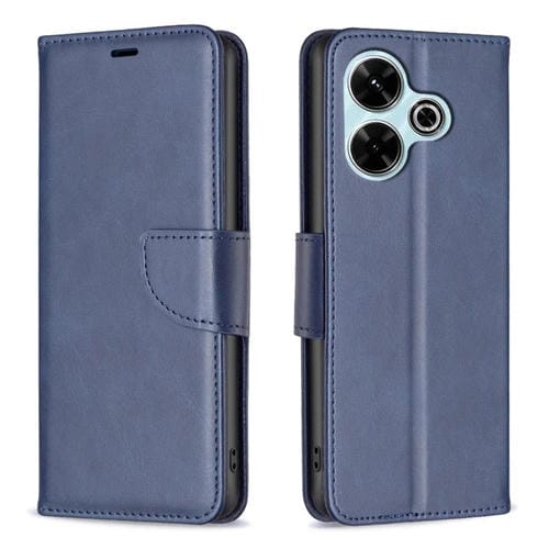 Para Xiaomi Poco M6 4G / Redmi 13 4G Funda para Teléfono de Cuero con Tapa de Color Puro con Textura de Piel de Cordero (Azul)