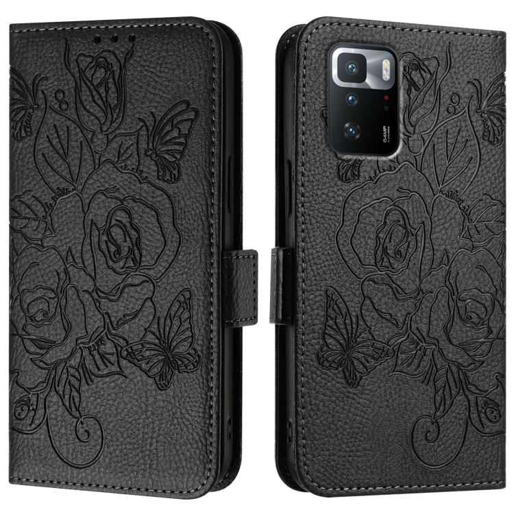 Para Xiaomi Poco X3 Gt Funda de Teléfono de Cuero Antirrobo Rfid con Relieve Rosa (Negro)