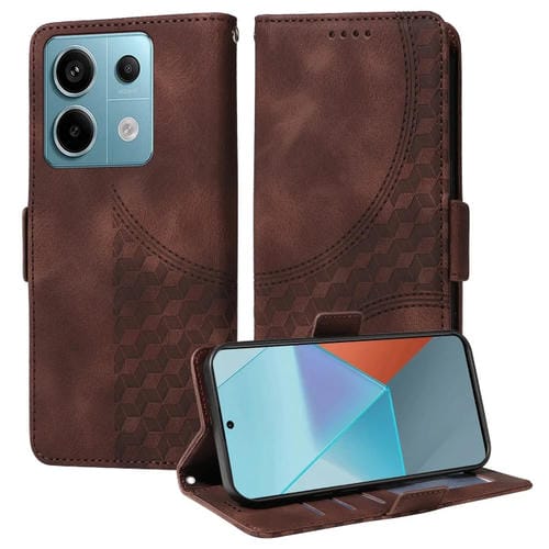 Para Xiaomi Poco X6 Funda para Teléfono de Cuero Estrellado con Rombos En Relieve (Marrón)