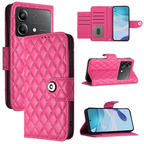Para Xiaomi Poco X6 Neo Funda para Teléfono con Tapa de Cuero con Textura Rómbica y Cordón (Rojo Rosa)
