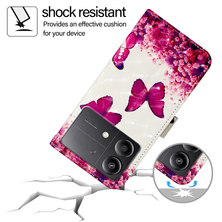 Para Xiaomi Poco X6 Neo Global 3D Pintura Funda de Teléfono de Cuero con Tapa Horizontal (Mariposa Rosa)