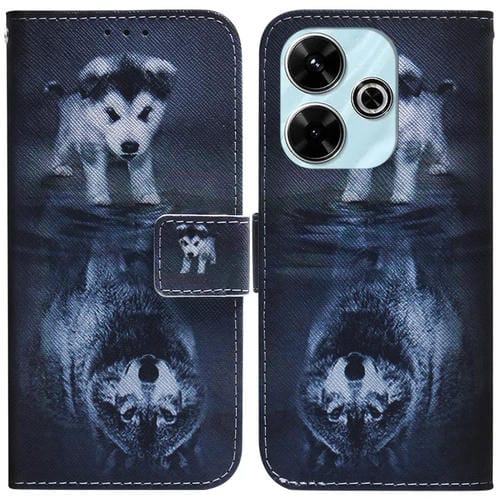 Para Xiaomi Redmi 13 4G Funda de Cuero con Tapa con Dibujo Coloreado (Lobo y Perro)