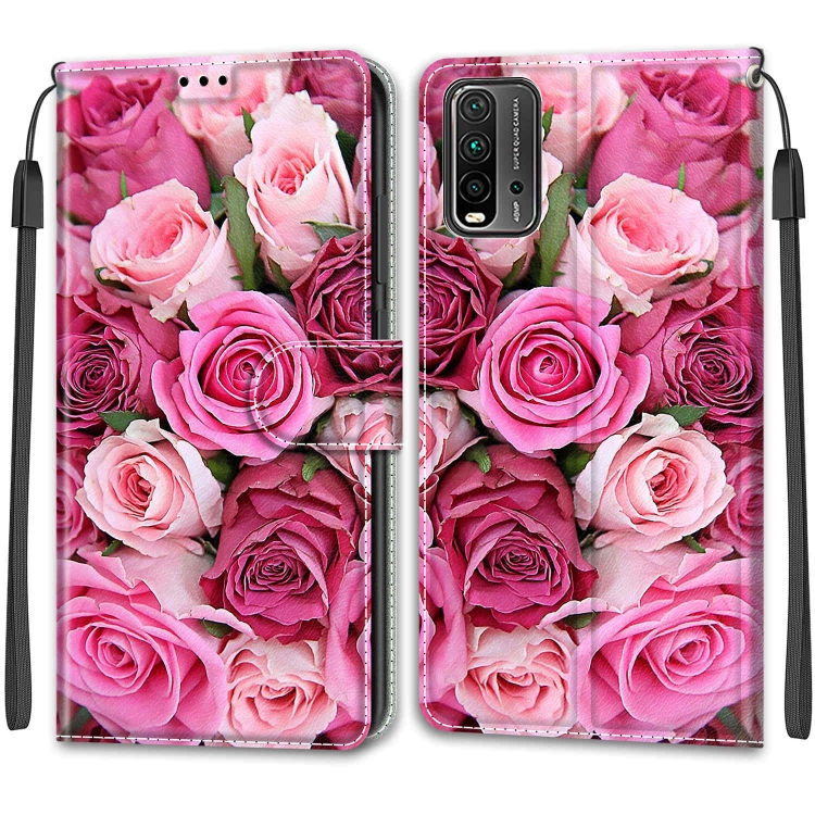Para Xiaomi Redmi 9 Power / Note 9 4G Tensión de Color Dibujo de Color Magnético Cierre de Cuero Horizontal Flip Pu Funda con Soporte y Ranuras de Tarjetas (C17 Hoja Verde Rosa Rosa)