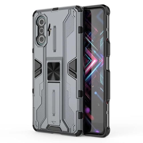 Para Xiaomi Redmi K40 Gaming Supersonic PC + TPU Funda Protectora a Prueba de Golpes con Titular (Gris)