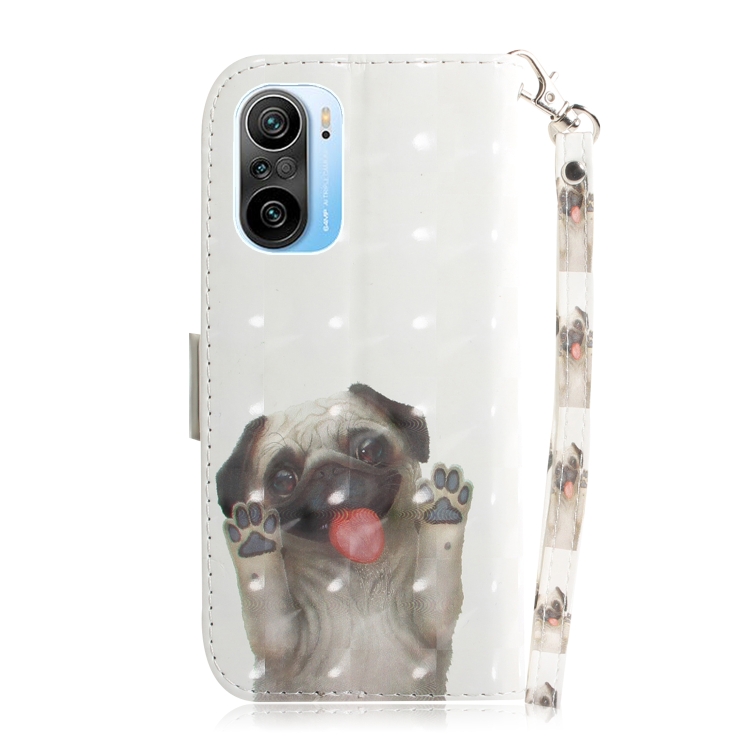 Para Xiaomi Redmi K40 / K40 Pro / Poco F3 3D Dibujo de Color Dibujo Horizontal Flip Horizontal con Titular y Slots de Tarjetas y Billetera y Lanyard (Pug)